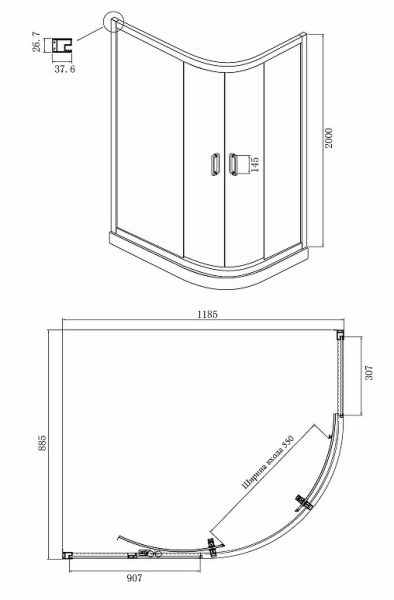 • Размеры (ШхВхД): 1185x2000х885 мм.