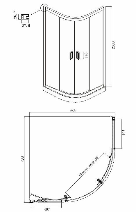 - Размеры (ШхВхД): 985x2000х985 мм.