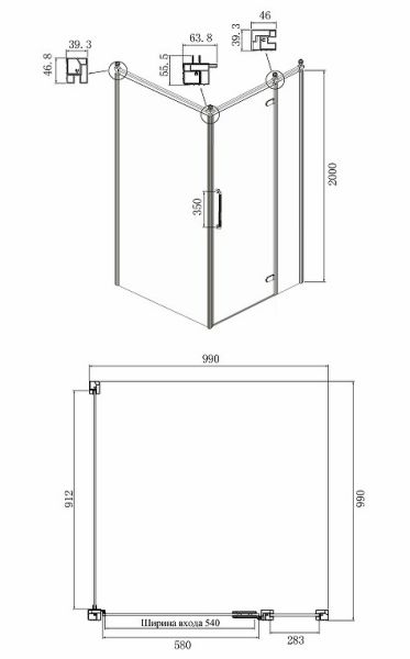 • Размеры (ШхВхД): 990x2000х990 мм.