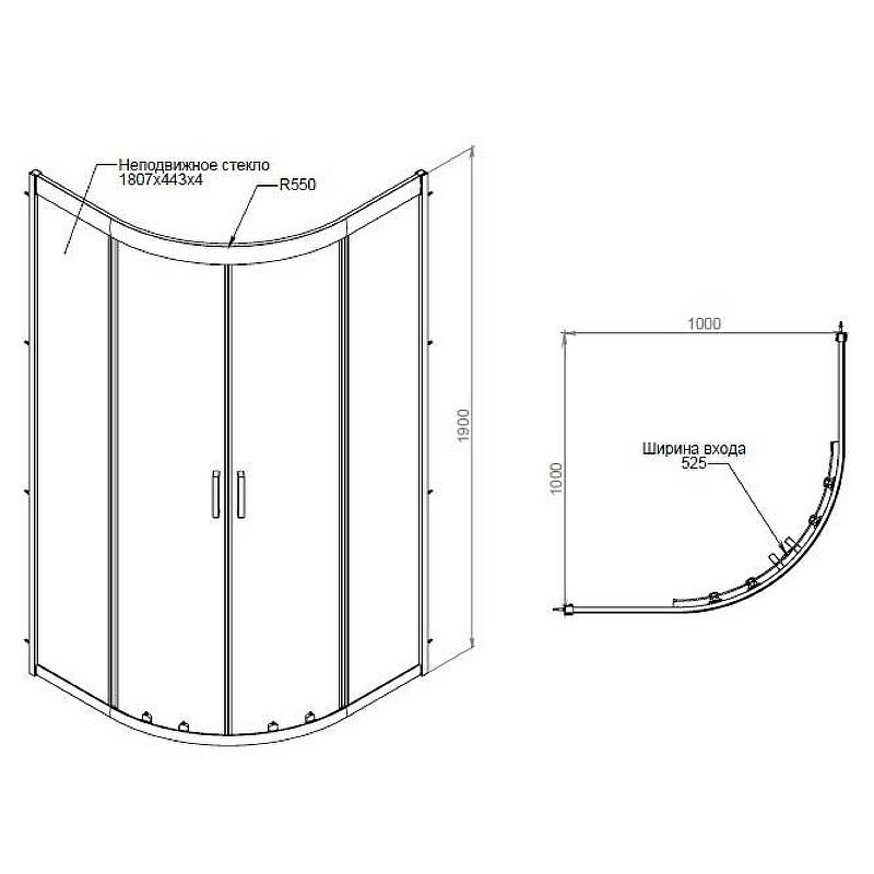 Душевой уголок AM.PM Gem 100х100 W90G-401-100BT профиль Черный матовый стекло прозрачное