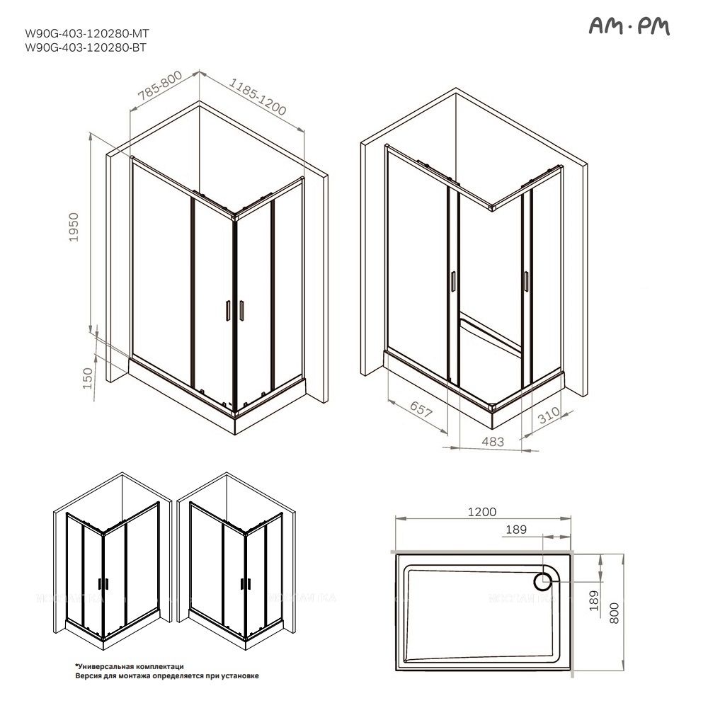 Душевой уголок AM.PM Gem W90G-403-120280-MT профиль хром 120х80 см Подробнее