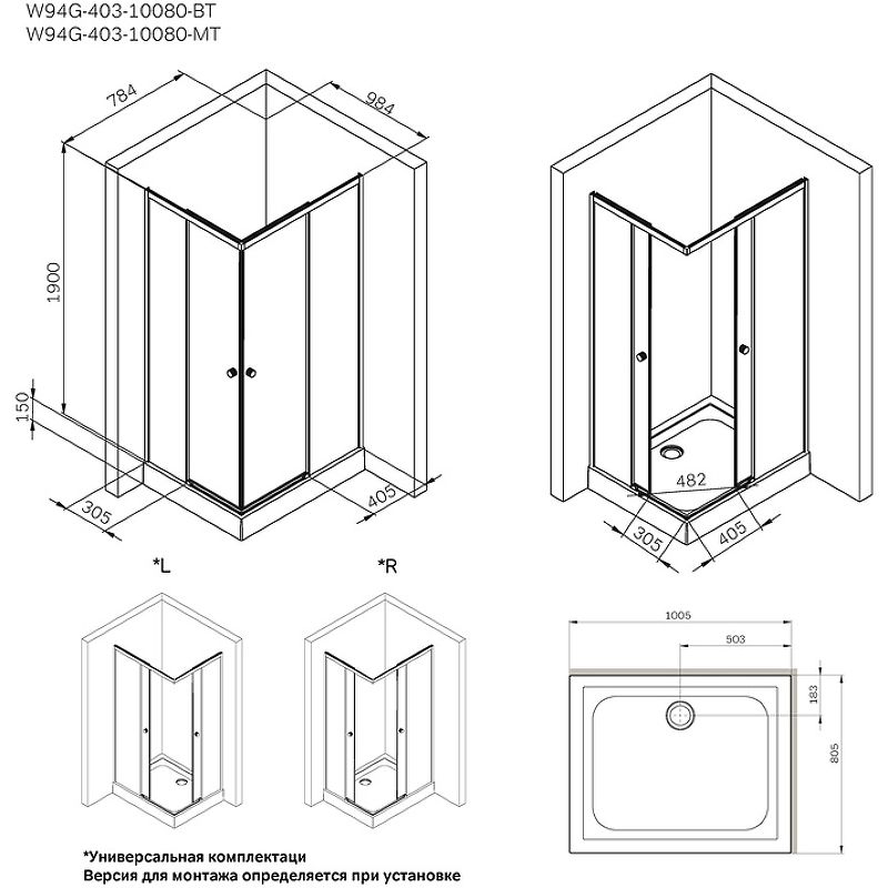 Душевой уголок AM.PM X-Joy W94G-403-10080-MТ 100х80 профиль Хром матовый стекло прозрачное купить