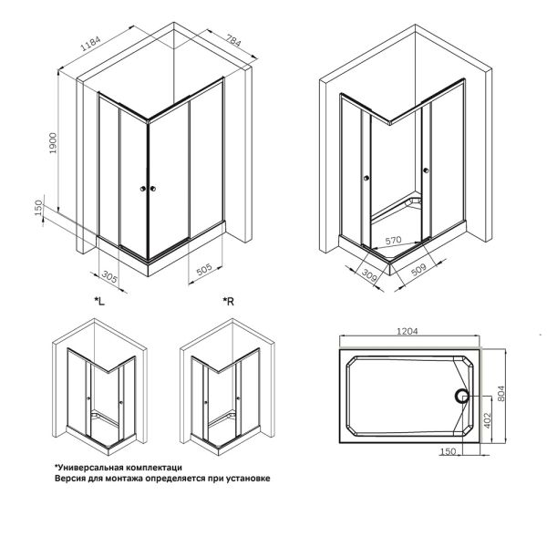 Монтаж:на поддон , на пол