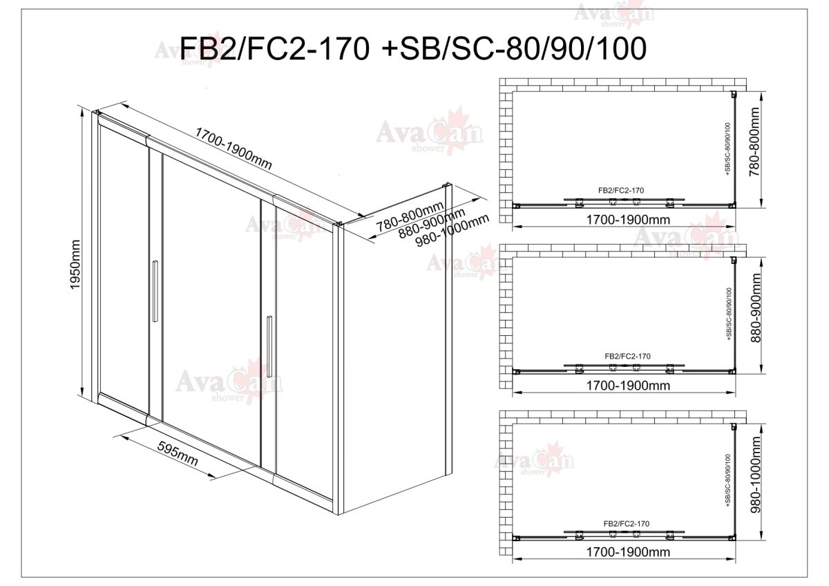 Душевой уголок AvaCan FB2 170-190 + SB100 чёрный