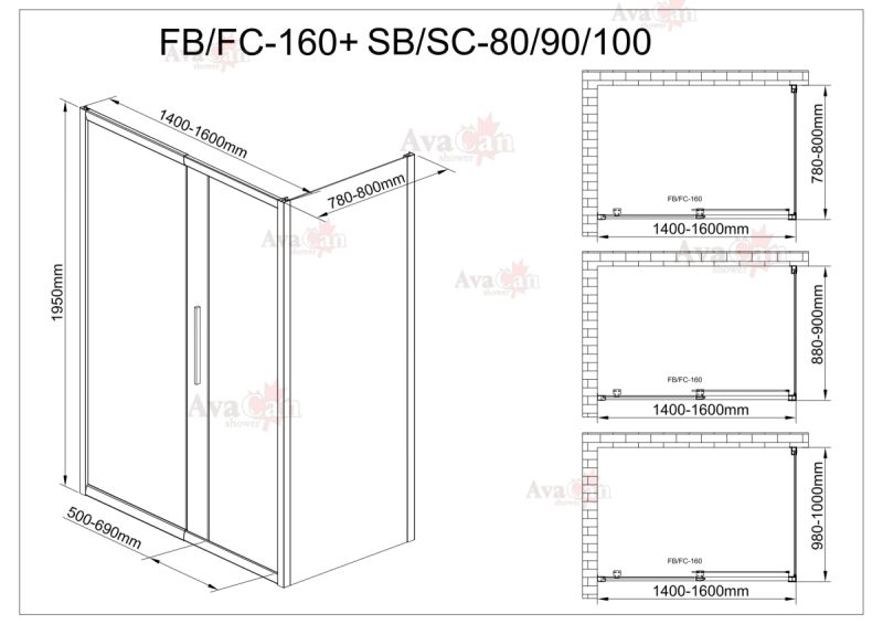 Душевой уголок AvaCan FС 140-160 + SС80 хром