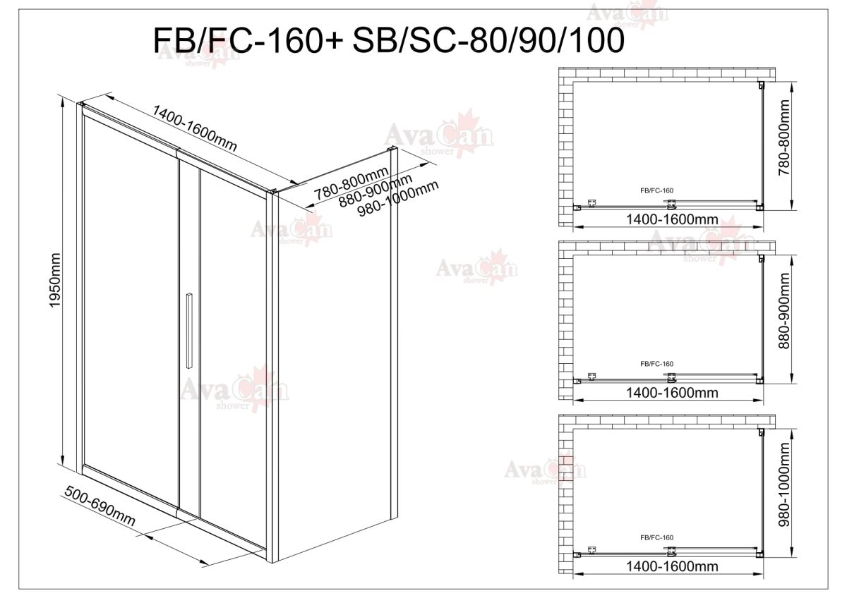 Душевой уголок AvaCan FС 140-160 + SС90 MT хром