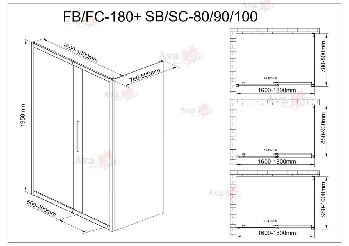 Душевой уголок AvaCan FС 160-180 + SС80 хром