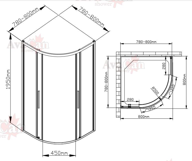 Душевой уголок AvaCan HC 80 MT 80x80 см хром купить