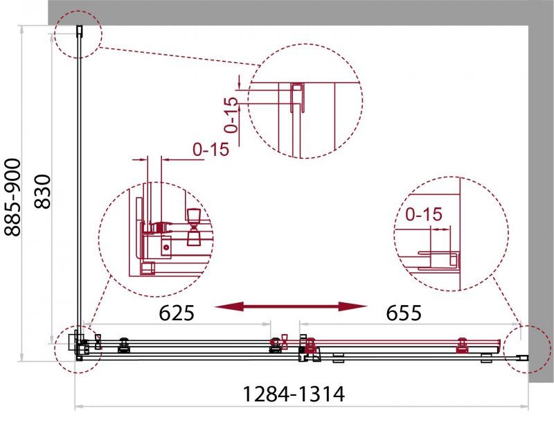 Материал полотна двери: закаленное стекло Регулировка ширины: предусмотрена за счет боковых проф... Подробнее
