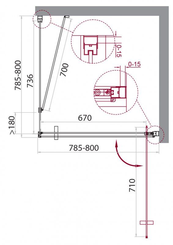 Регулируемый пристенный профиль, позволяет без проблем установить изделие даже при кривизне стен