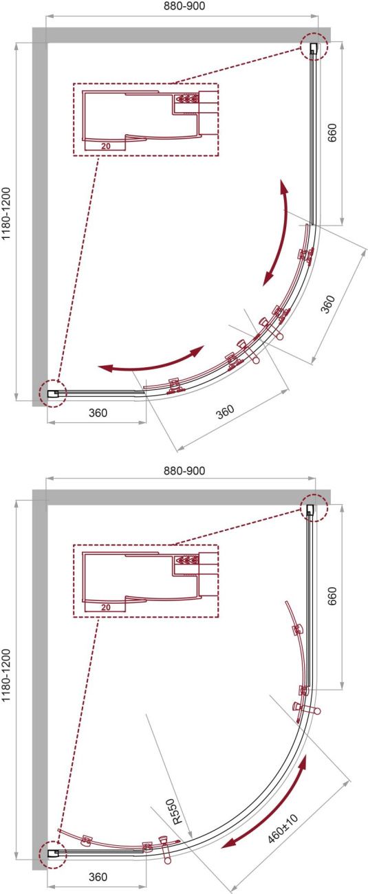 Душевой уголок BelBagno UNO-195-RH-2-120/90-C-Cr хром