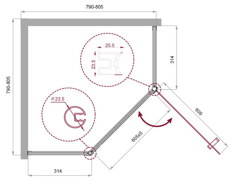 Толщина полотна двери: 5 мм