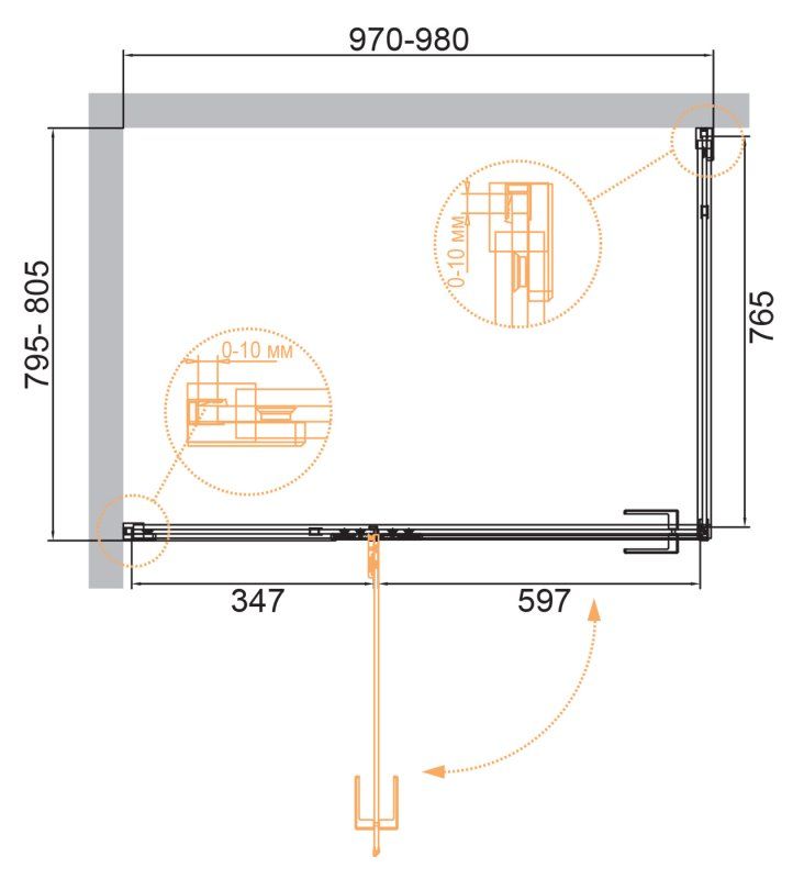 Монтаж: пристенный в угол
