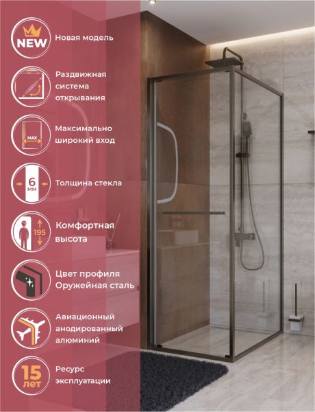 Душевой уголок CEZARES LUX-AH-FS-1-70/100-C-GM оружейная сталь купить