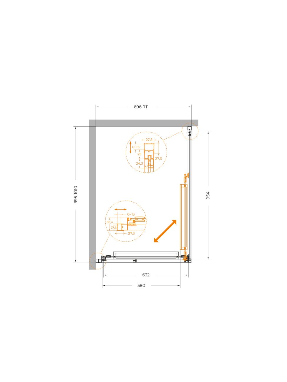 Душевой уголок CEZARES LUX-AH-FS-1-70/100-C-GM оружейная сталь