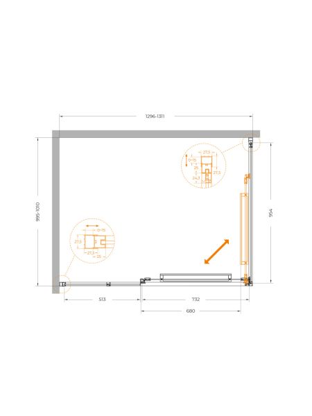 Душевой уголок CEZARES LUX-AH-FS-11-130/100-C-CR