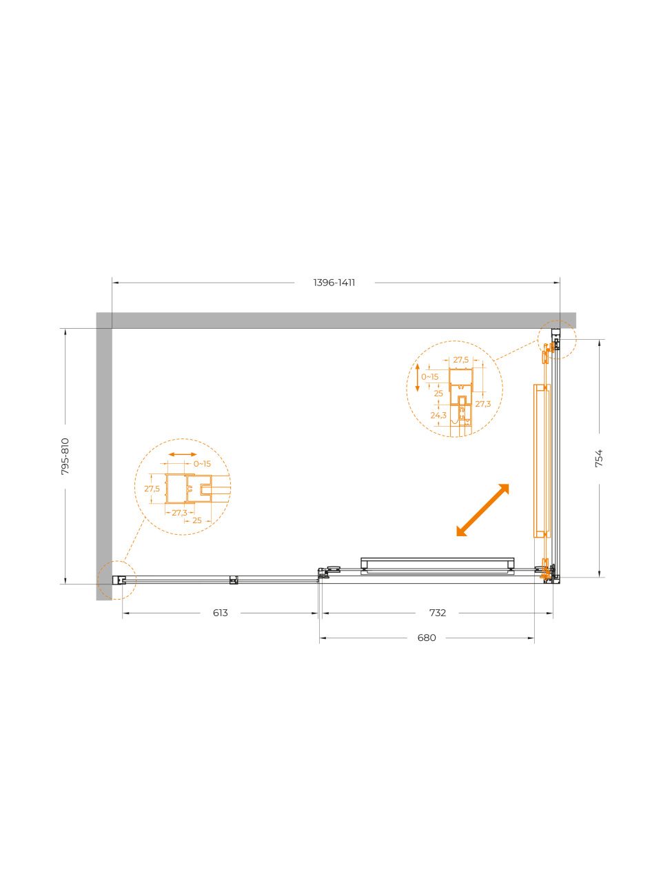 Душевой уголок CEZARES LUX-AH-FS-11-140/80-C-CR хром