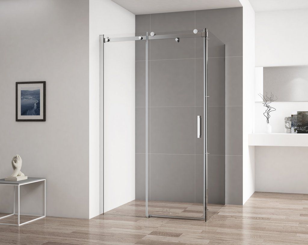 Душевой уголог: прямоугольный. Тип дверей: одна раздвижная дверь. Стекло: 8 мм, прозрачное.Исполнение: хром.Поддон: тип АН, А или барьер. Поддон или барьер приобретается отдельно. Особенности: подвижные ролики плавно скользят по металлическим направляющим.