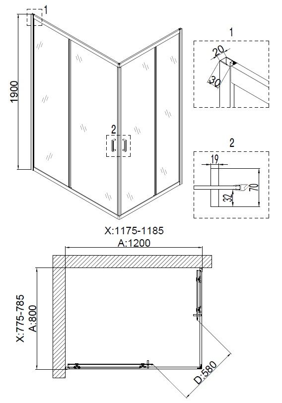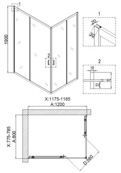Душевой уголок Niagara Nova NG-6810-08 BLACK 120x80 см