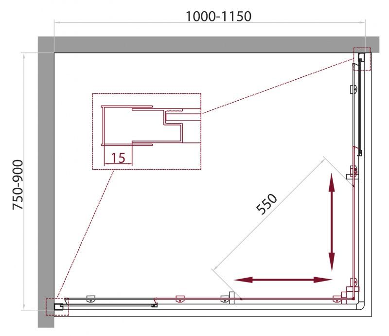 Регулировка ширины: предусмотрена за счет боковых профилей