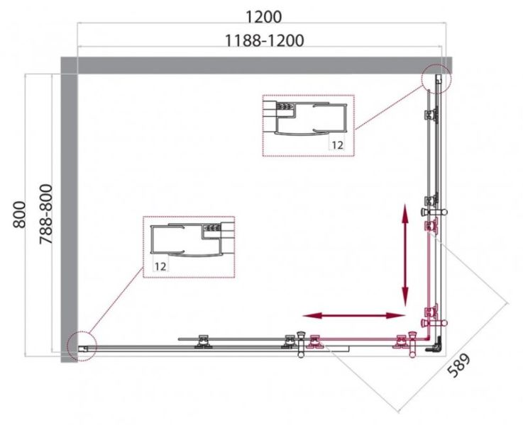 Душевой уголок прямоугольный, хром BelBagno UNO-195-AH-2-120/80-C-Cr