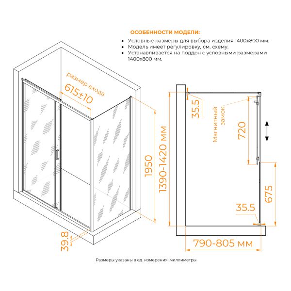 • Конструкция дверей: раздвижная