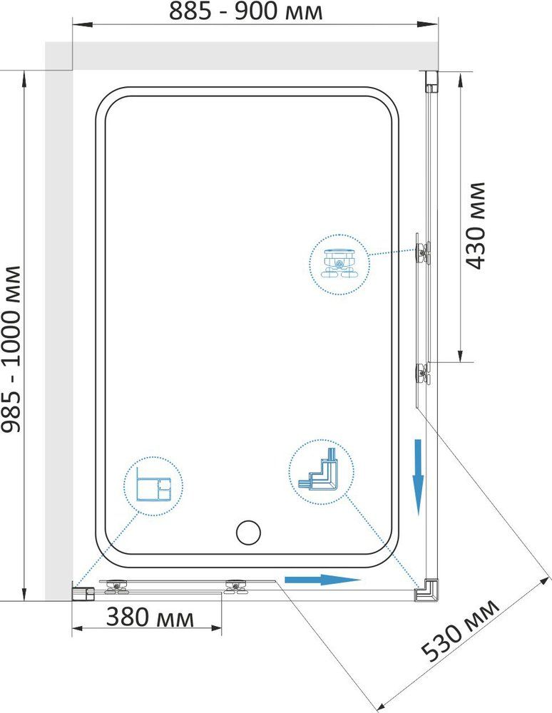 Напольный монтаж / монтаж на поддон / монтаж пристенный в угол