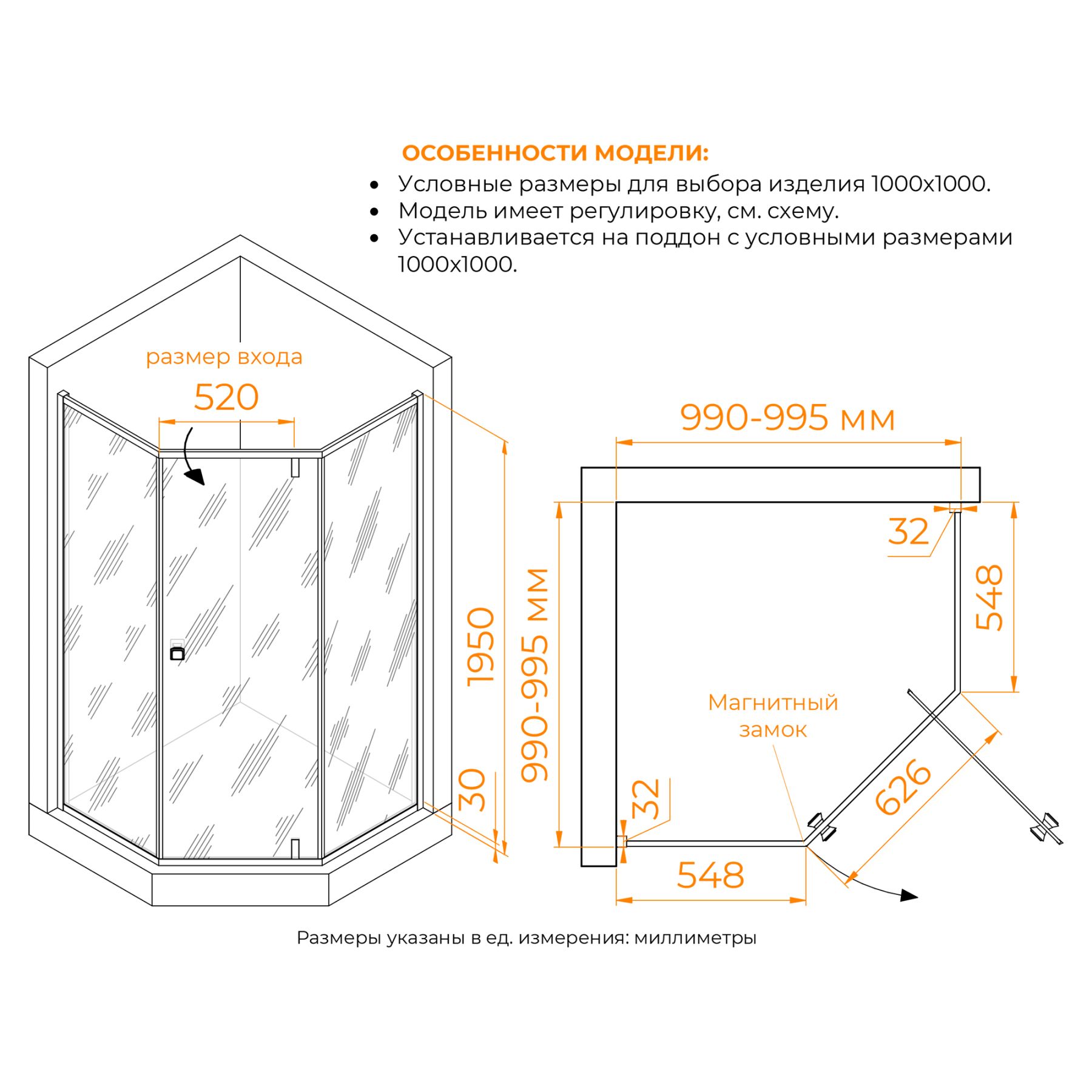 • Толщина стекла: 8 мм