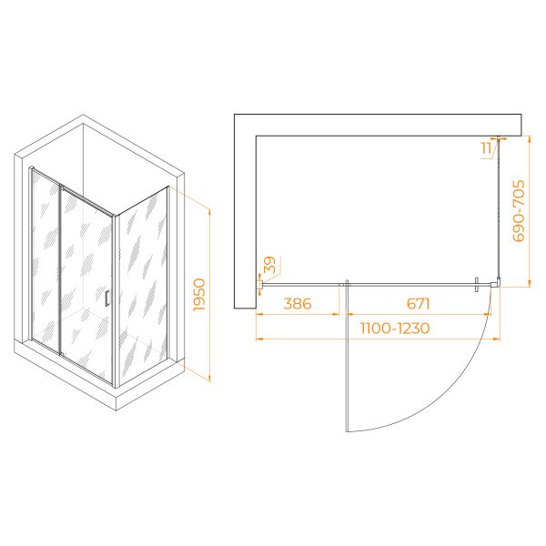 Душевой уголок RGW PA-078B (RGW PA-008B + Z-050-2B) 350807817-14 110x70см чёрный