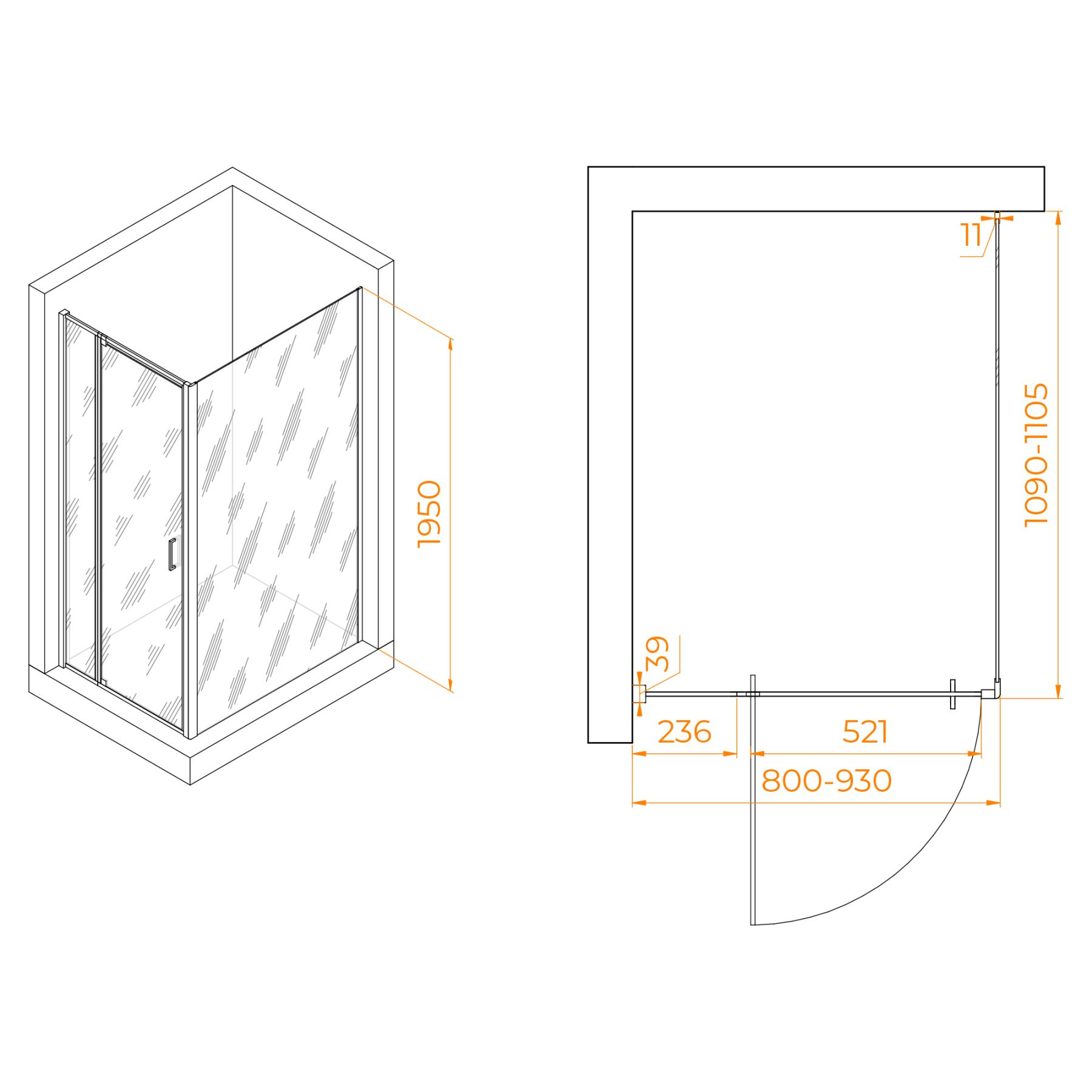 Душевой уголок RGW PA-078B (RGW PA-008B + Z-050-2B) 350807881-14 80x110см чёрный