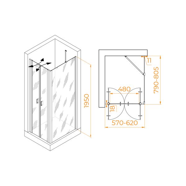 Душевой угол PA-144B (PA-104B+Z-050-2B+O-204B) - это превосходный выбор для тех, кто ищет комфо... Подробнее