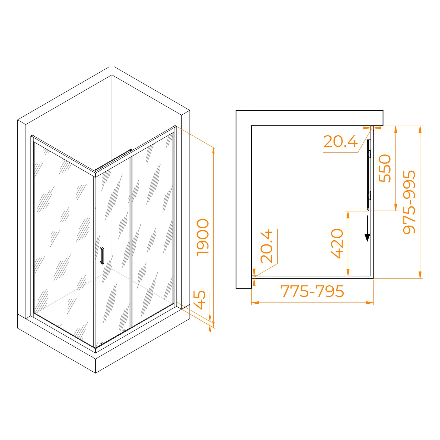 Душевой уголок RGW PA-245 410824580-11 80x100см хром купить