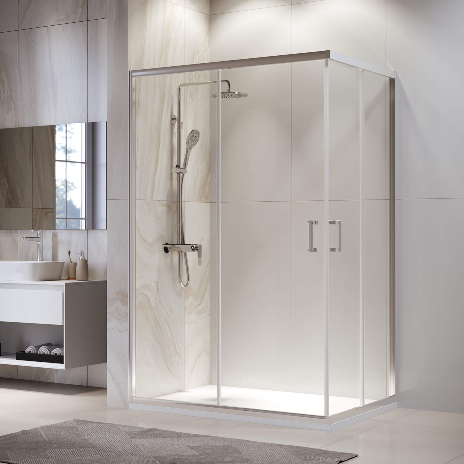 Душевой уголок RGW PA-246 — это качественный продукт, который станет незаменимым элементом в вашей ванной комнате. Этот душевой уголок имеет прямоугольную форму и прозрачное стекло толщиной 6 мм. В комплекте с душевым уголком идут двойные регулируемые ролики, которые обеспечивают плавное и бесшумное открытие и закрытие дверей.Высота душевого угла составляет 1950 мм, что позволит вам комфортно принимать душ, даже если вы высокого роста. Конструкция дверей раздвижная, что экономит место в ванной комнате. Этот душевой уголок также имеет регулируемый профиль, что позволяет легко настроить его на любые условия установки.