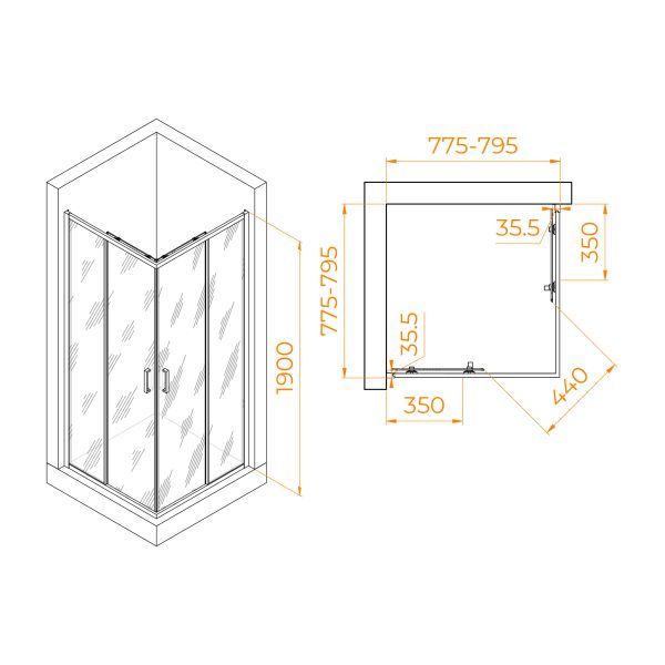 Душевой уголок RGW PA-31 02083188-11 80x80см хром купить