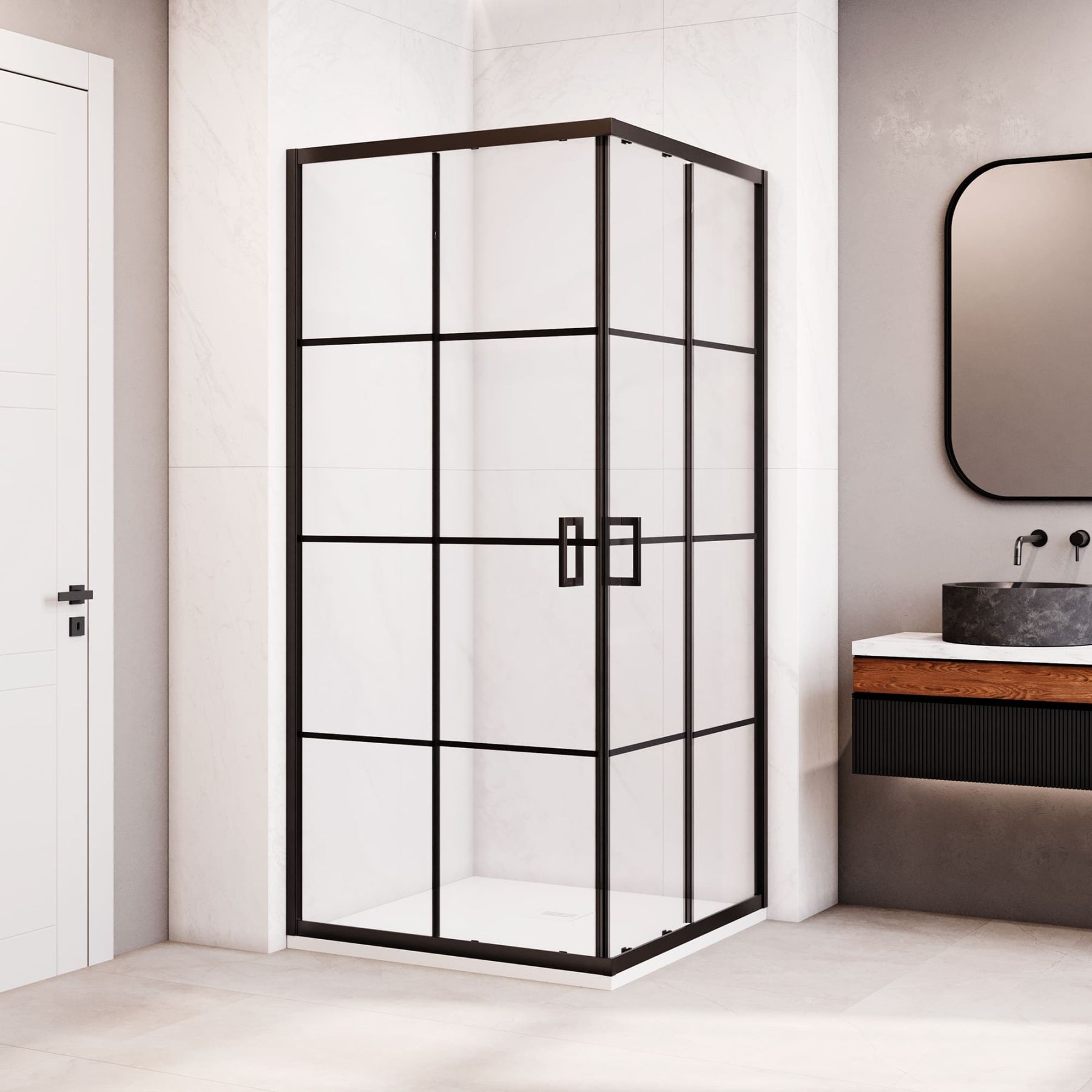 Квадратный душевой уголок RGW PA-34B 90x90 — это идеальное сочетание строгой геометрии, инженерной точности и продуманного комфорта. Модель с раздвижными дверями и выразительным черным контуром на стекле станет стильным и надежным решением для вашей ванной комнаты.