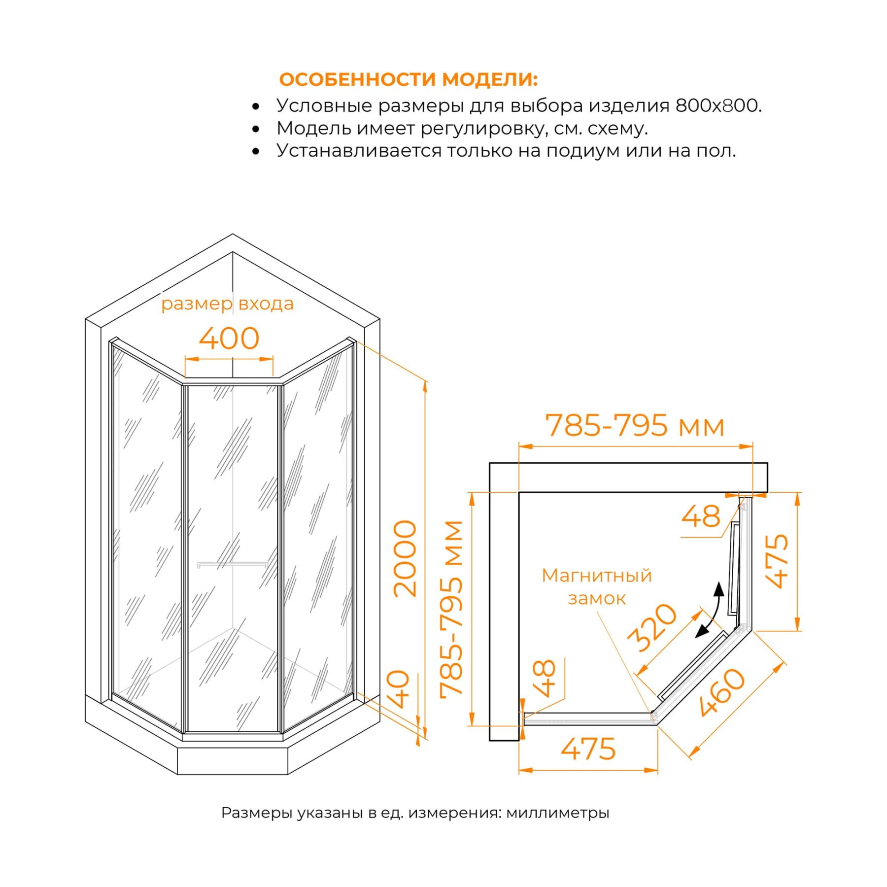 Душевые углы можно установить, как на плитку с трапом так и на поддон соответствующего размера. (с поддоном стандартного размера не совместим (см. схему изделия)