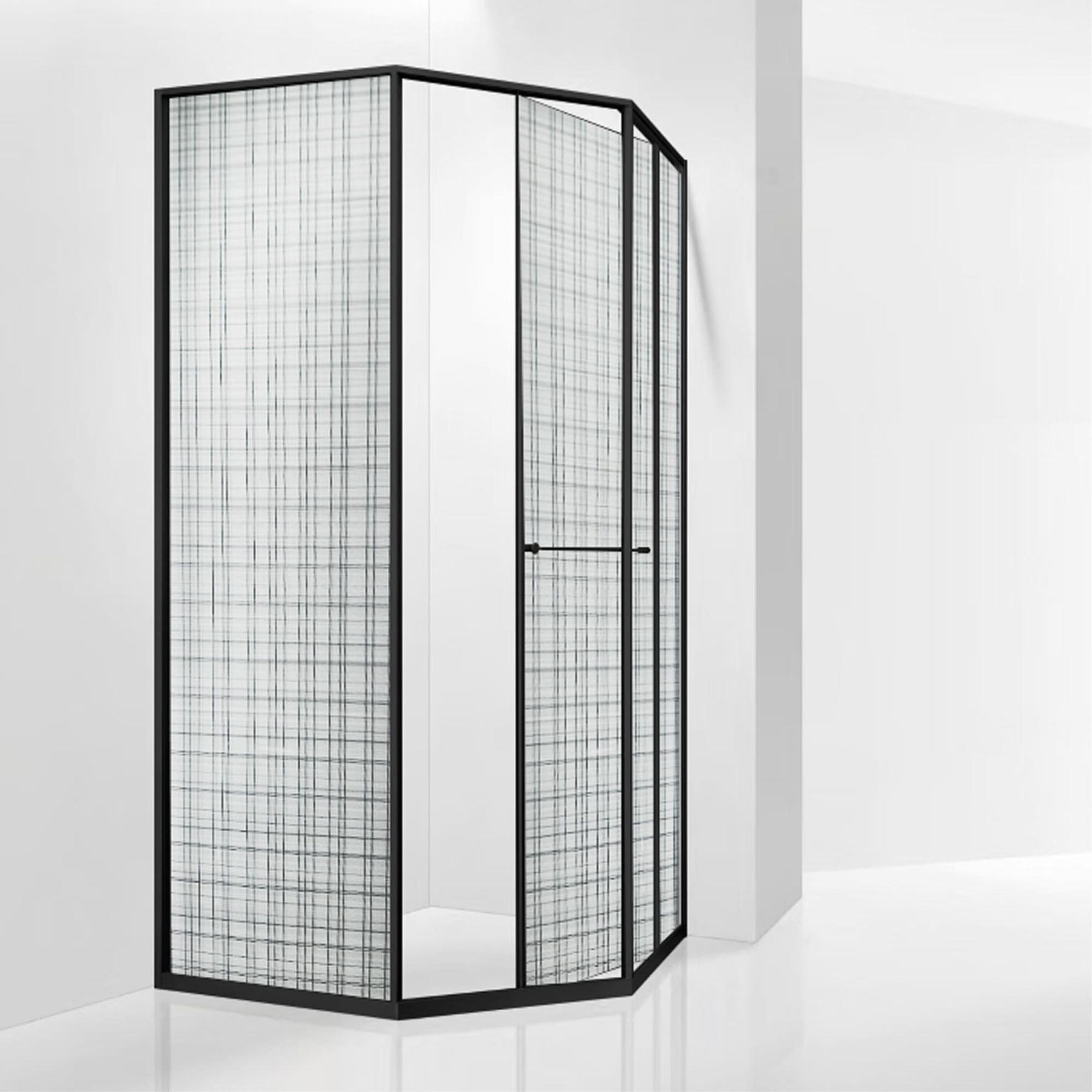 Инновационный механизм раздвижной системы при открытии плавно смещает дверь вдоль стационарного стекла при этом обеспечивая комфортный вход и просторное пространство внутри душевого угла.