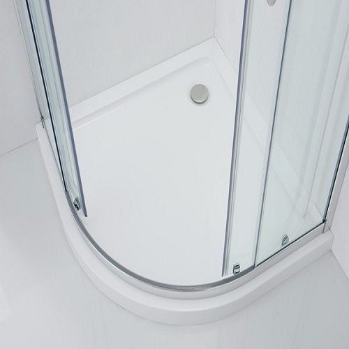 Душевое ограждение с поддоном высотой 150 мм, глянцевый серебристый алюминиевый профиль, латунная ручка, стекло толщиной 6 мм, алюминиевый профиль. Две раздвижные двери.