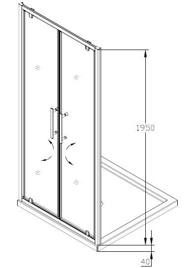 Душевое ограждение. Глянцевый серебристый алюминиевый профиль, алюминиевая ручка стекло толщиной 6 мм. Дверки открываются на себя и от себя.