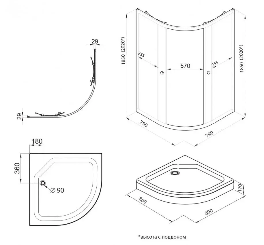 Высота с поддоном: 202 см