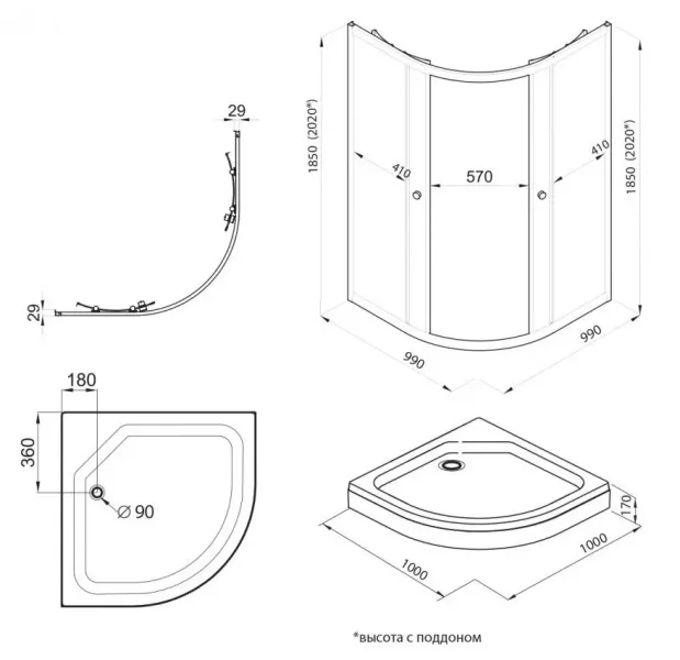 Размер: 100 x 100 x 185 см