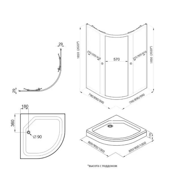 • Поддон в комплекте нет