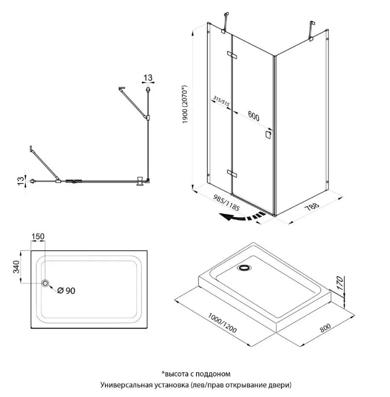 - Размеры: 100х80х190