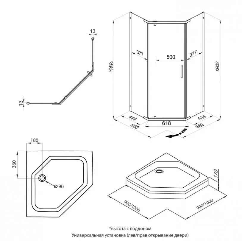 - Размеры: 90х90х190