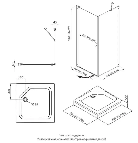 • Размеры: 90х90х185