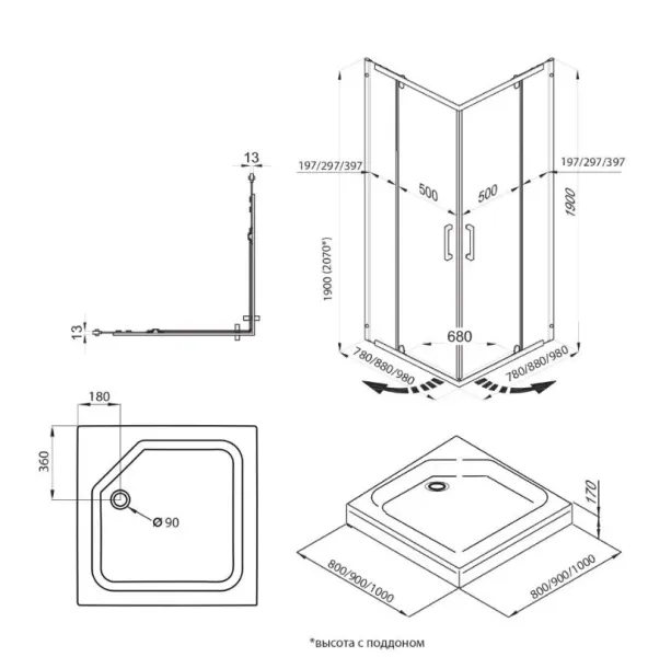 Душевой уголок Triton Каппа. Хром. Без поддона. Размеры: 90х90х190 Профиль: Хром Переднее ... Подробнее