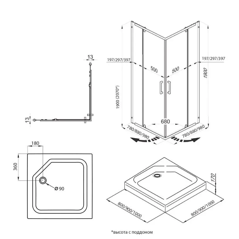 - Высота поддона 17 см