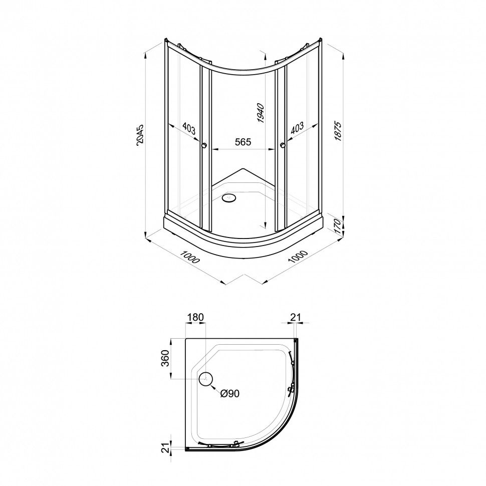 - Размер: 100 x 100 x 205 см
