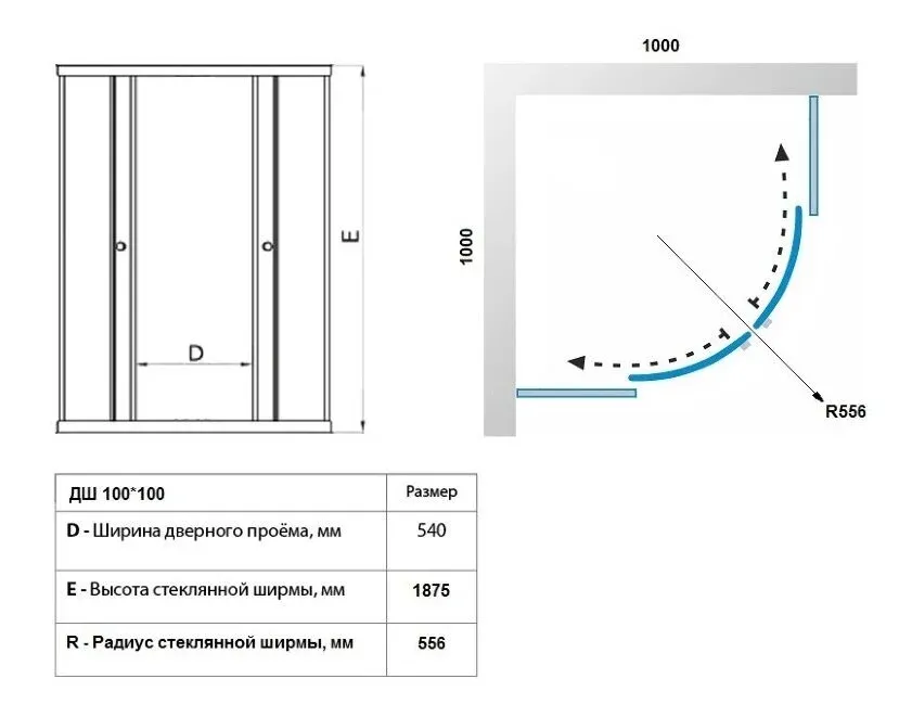 • Конструкция дверей: раздвижная