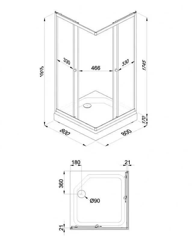 • Высота с поддоном: 191.5 см